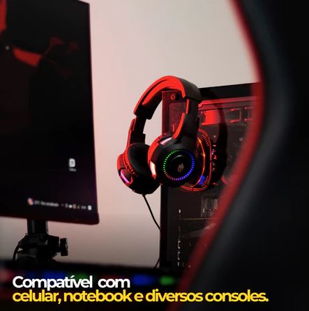 Fone De Ouvido Headset Gamer com Fio Profissional Preto Led Rgb PC USB P2/P3 XBOX PS4