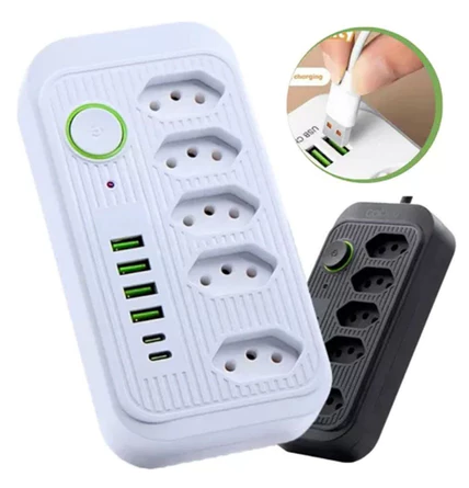 Extensão 5 Tomadas 4 USB 2 TypeC Universal Bivolt 110v/220v 2500W Power 2m Filtro de Linha Segurança